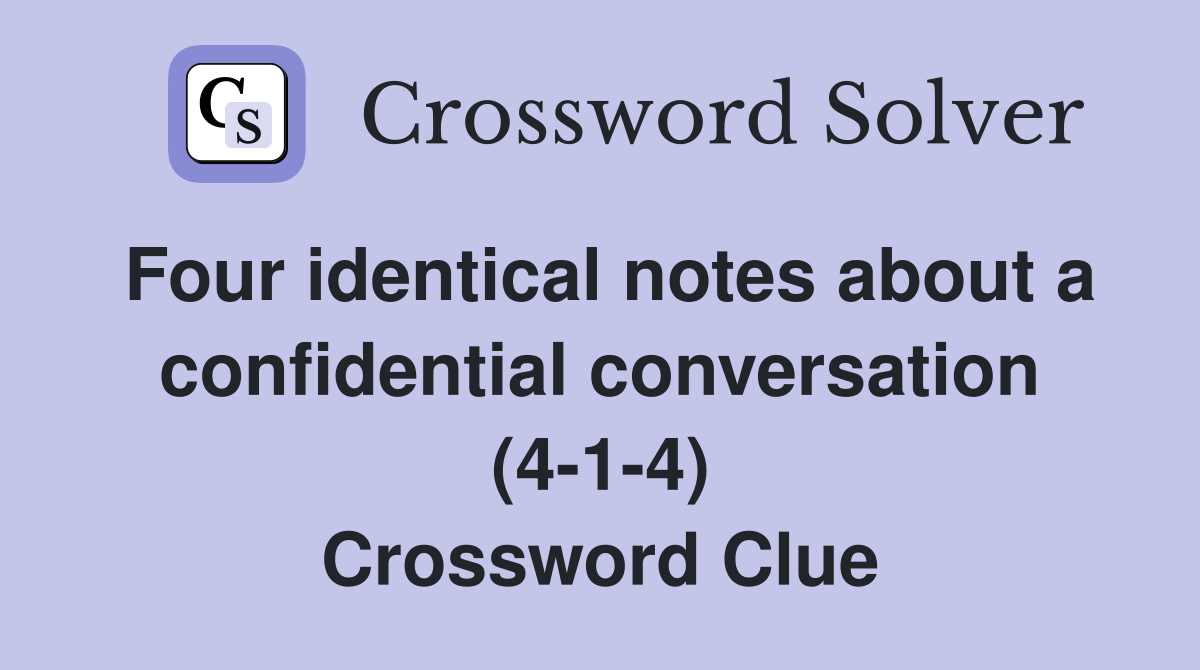 Find the right answer to the crossword puzzle clue confidential from daily quick crossword. Find 11 possible answers for the crossword clue confidential with 5 to 12 letters. Here is the answer for the crossword clue confidential last seen in mirror classic puzzle. We have found 40 possible answers for this clue in. Find 7 possible solutions for the crossword.