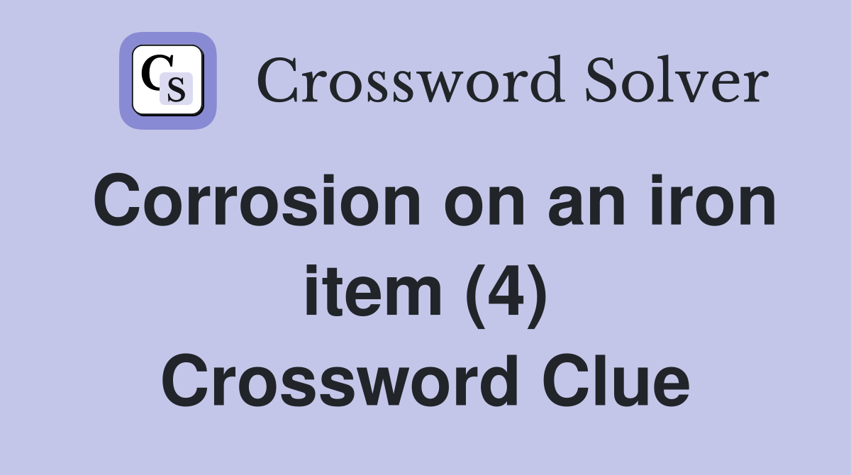 Corrosion on an iron item (4) Crossword Clue Answers Crossword Solver