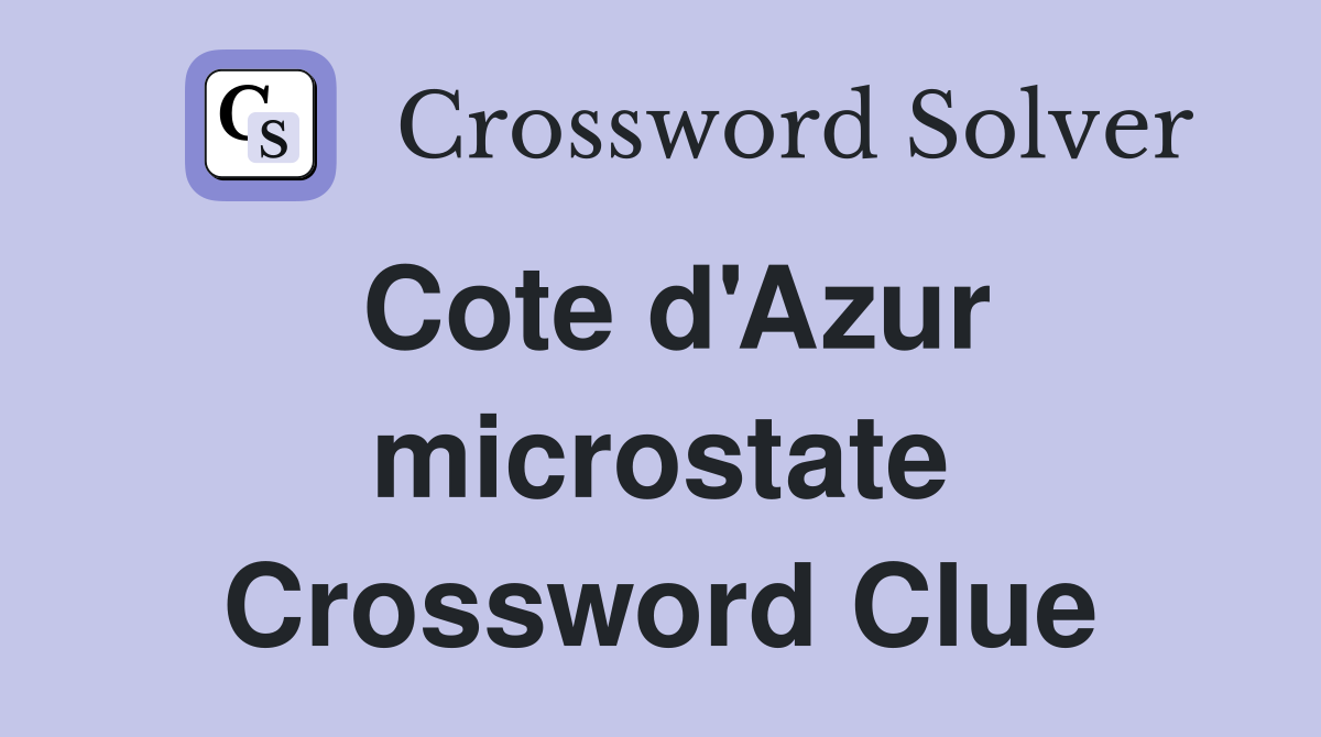 Cote d'Azur microstate Crossword Clue Answers Crossword Solver