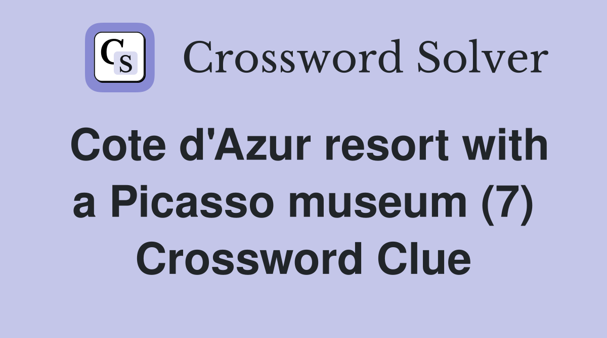Cote d'Azur resort with a Picasso museum (7) Crossword Clue Answers