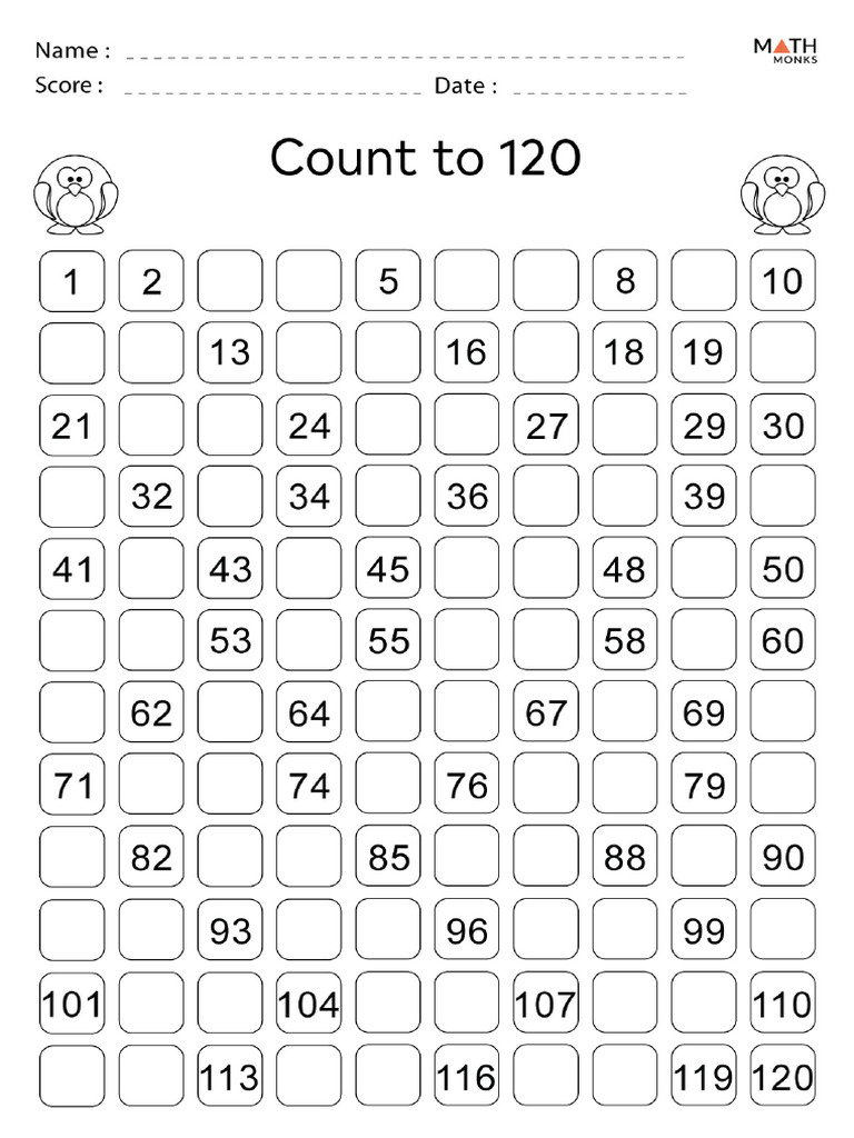 Counting To 120 Worksheets - Basic 120 chart including versions that are blank and with missing numbers. There's a blank 120 chart and one that's partially filled in! These number charts serve as key number recognition, skip counting, place value understanding,. 120 chart to teach numbers 1 through 120! Also visit the site for many other charts and resources including. Counting practice just got easier with these free printable 120 charts!