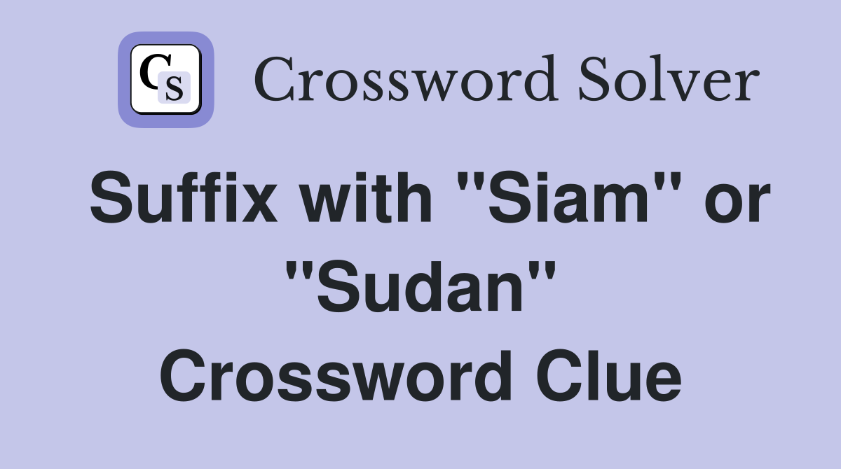 Suffix with "Siam" or "Sudan" Crossword Clue Answers Crossword Solver