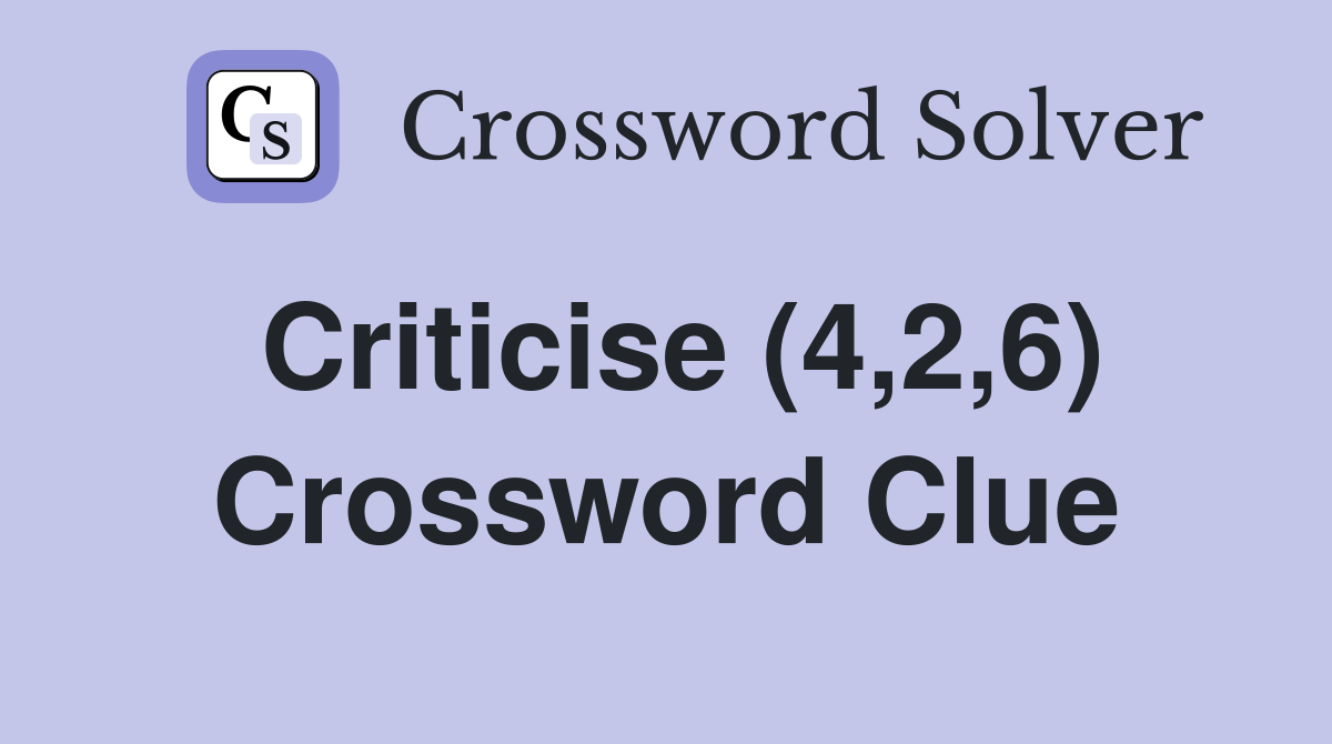 Criticise (4,2,6) Crossword Clue Answers Crossword Solver