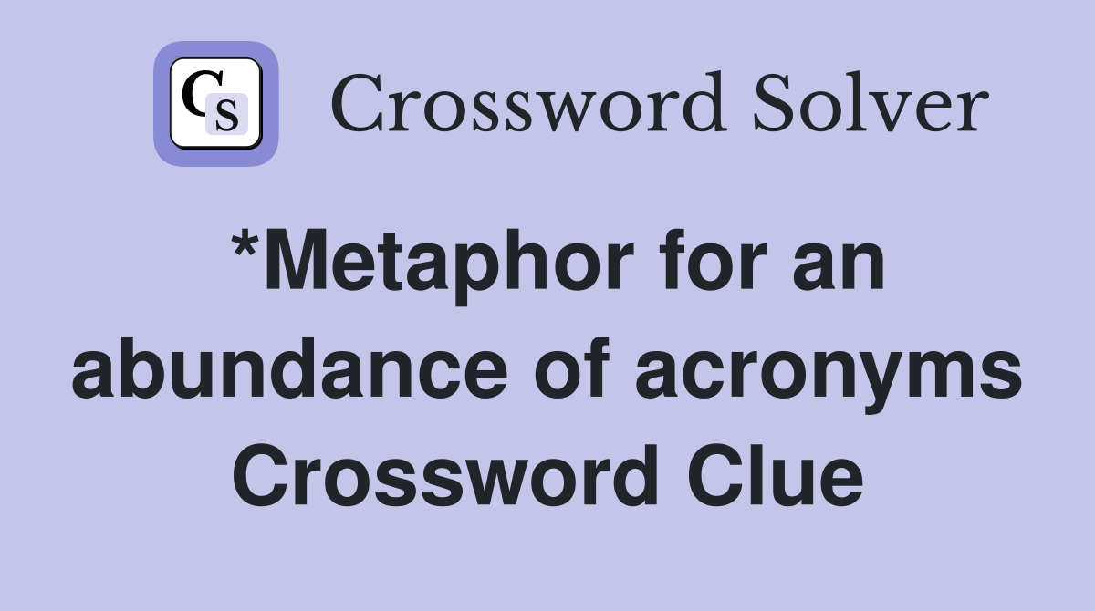*Metaphor for an abundance of acronyms Crossword Clue Answers