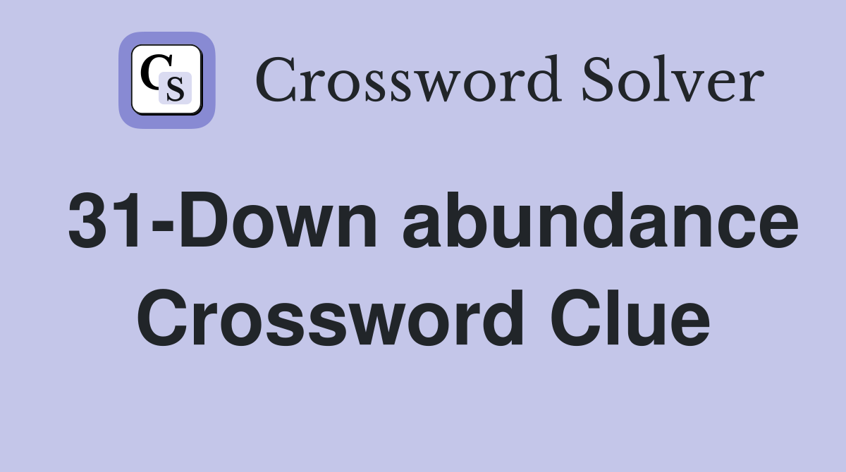 Today's crossword puzzle clue is a quick one: The crossword solver found 60 answers to abundance (5), 5 letters crossword clue. The most common solutions for the crossword clue abundance are slew with 4 letters, wealth with 6 letters, plenty with 6 letters,. Abundance crossword clue 16 answers from 3 10 letter ️ find your crossword answer with just 3.