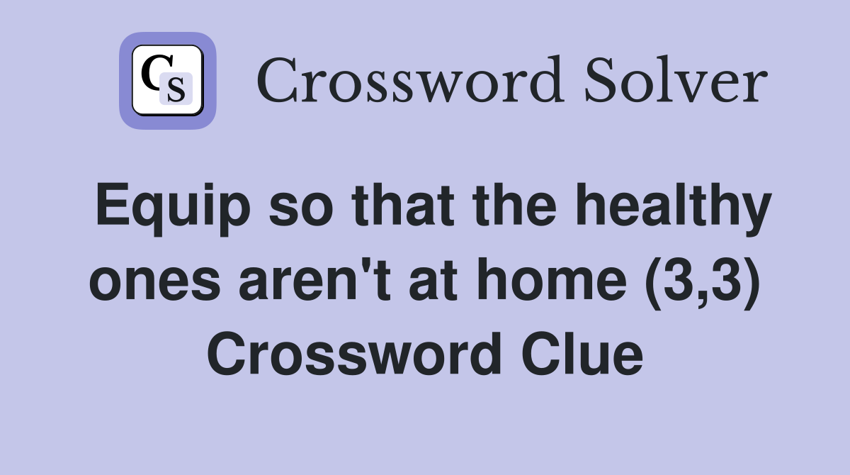 Equip so that the healthy ones aren't at home (3,3) Crossword Clue