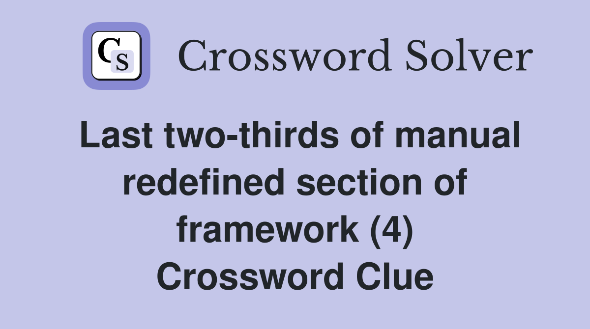 We have found 40 possible answers for this clue in our. Solve your cut into thirds crossword. The crossword solver finds answers to classic.