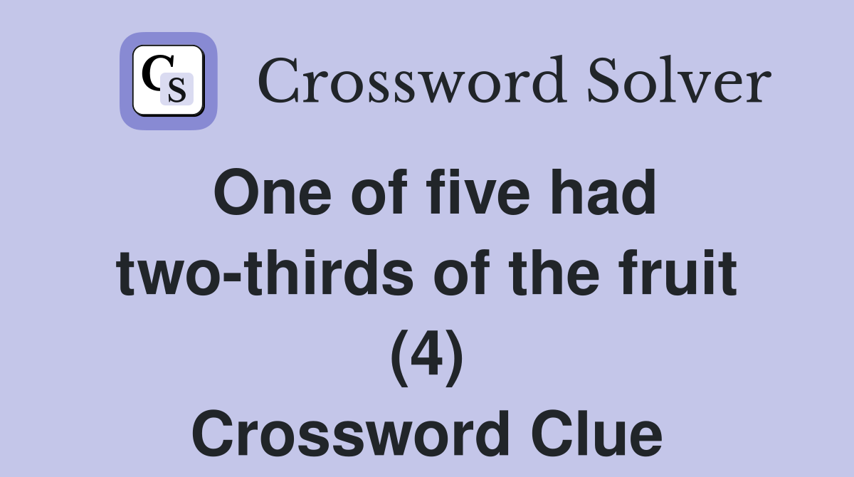 One of five had twothirds of the fruit (4) Crossword Clue Answers