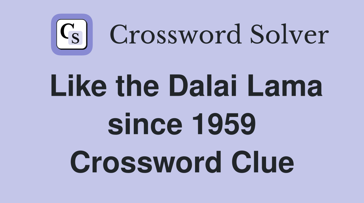 Like the Dalai Lama since 1959 Crossword Clue Answers Crossword Solver
