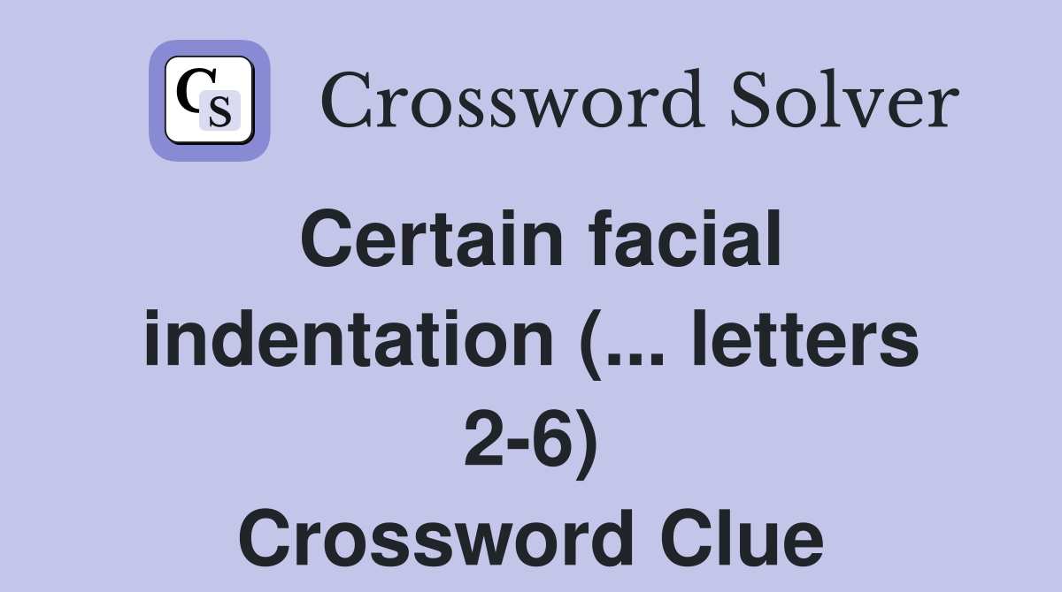 Certain facial indentation (... letters 26) Crossword Clue Answers