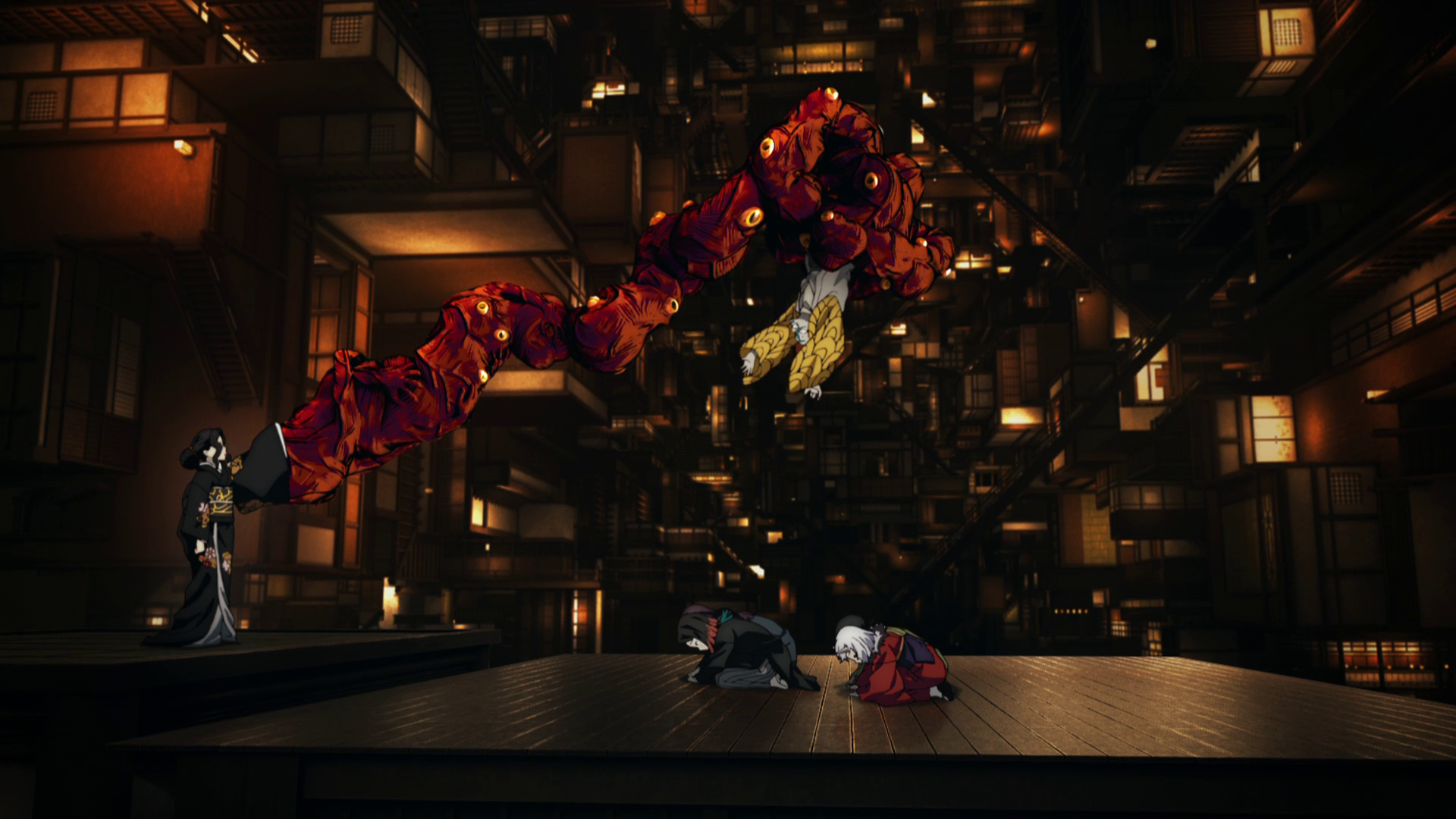 The first twelve demon moon to appear is the former lower moon six, kyogai who got demoted after reaching his limit.