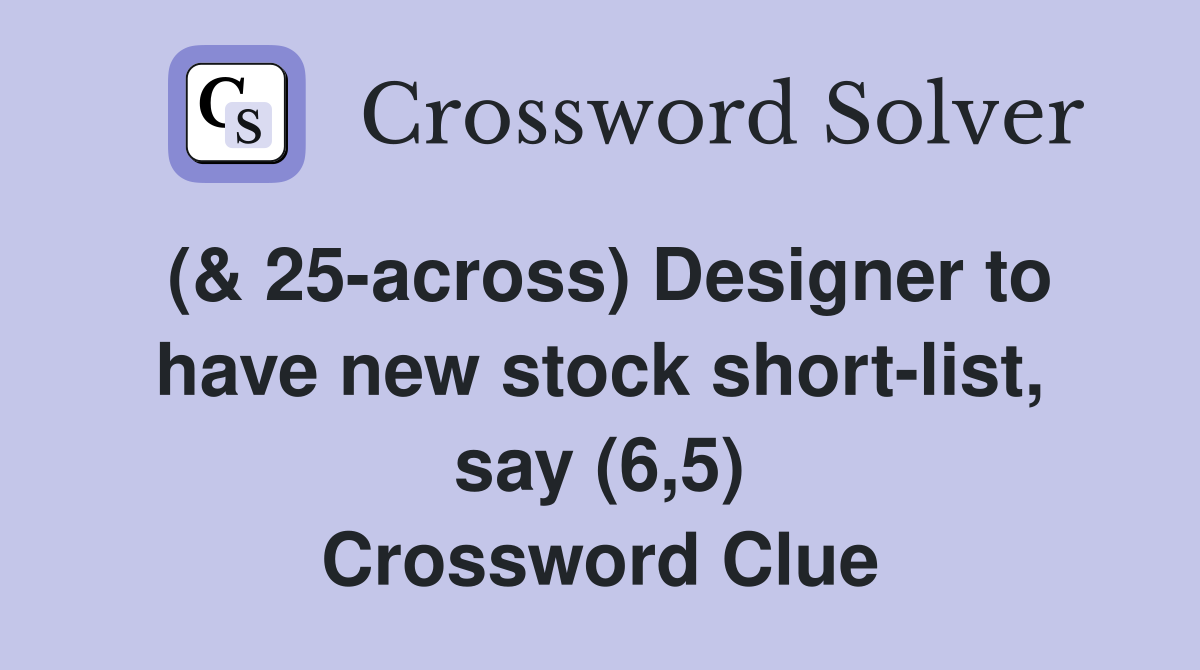 (& 25across) Designer to have new stock shortlist, say (6,5