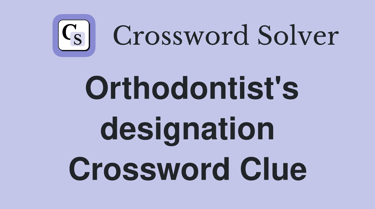 Orthodontist's designation Crossword Clue Answers Crossword Solver