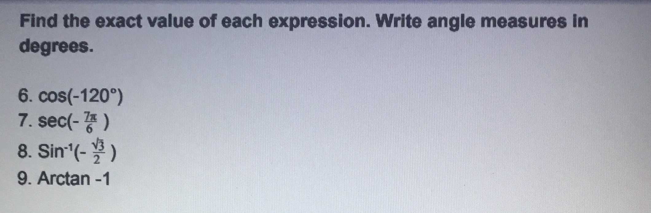 Find the exact value of each expression. Do not use a calcul Quizlet