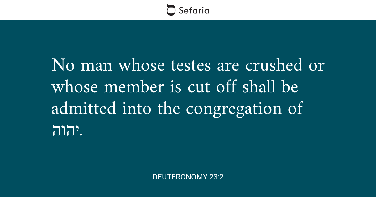 Deuteronomy 231 He that is wounded in the stones, or has his privy