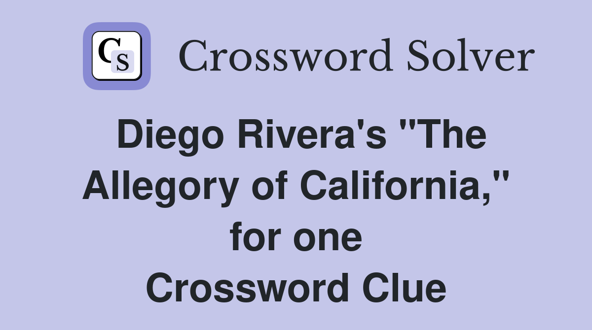 Here is the answer for the crossword clue diego rivera work, e.g. Ny times, daily celebrity, telegraph, la times and. There are related clues (shown below). We have found 40 possible answers for this clue in our database. Here is the answer for the crossword clue diego rivera works last seen in thomas joseph puzzle.