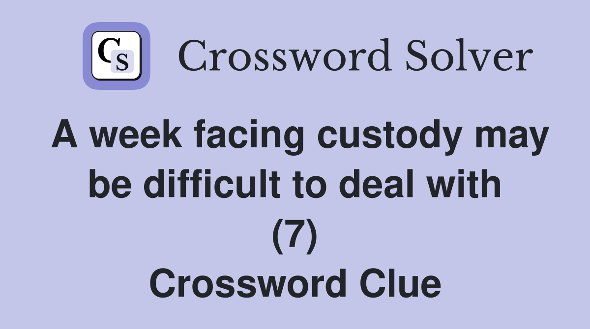 The crossword solver found 30 answers to difficult to deal with (7), 7 letters crossword clue. Know another solution for crossword clues containing difficult to deal with? We will try to find the right answer to this particular crossword clue. The crossword solver finds answers to classic. Add your answer to the crossword database now.