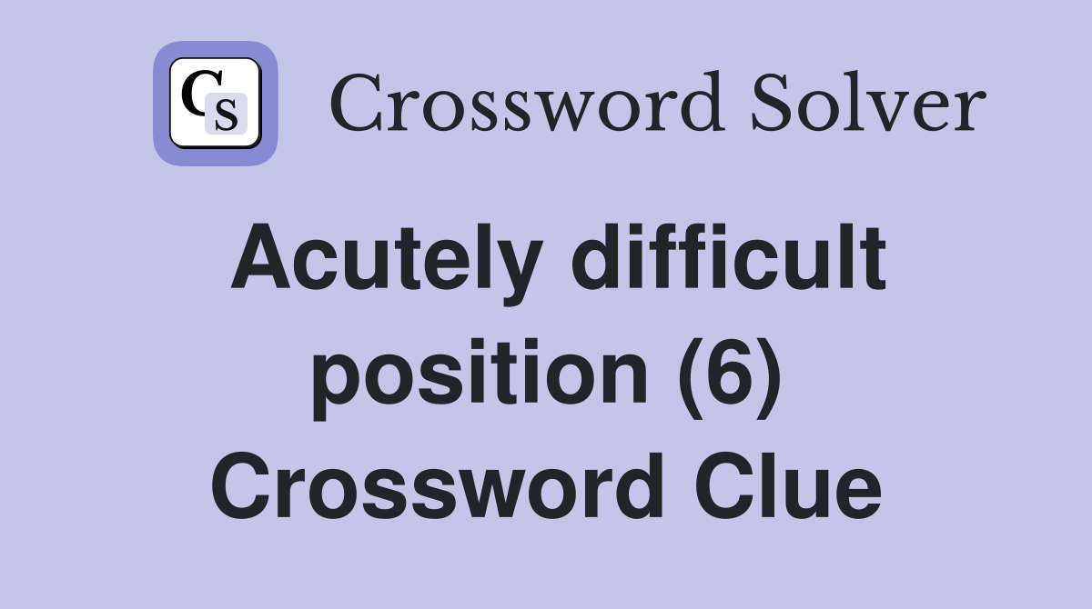 Acutely difficult position (6) Crossword Clue Answers Crossword Solver