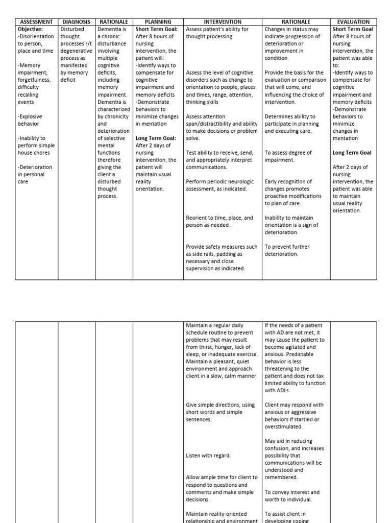 Disturbed Thoughts NCP PDF Alzheimer's Disease Cognitive Science