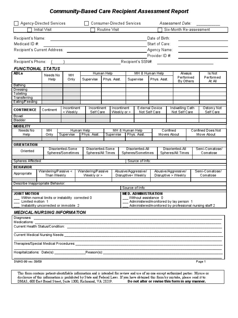 Form DMAS99. CommunityBased Care Member Assessment Forms Docs 2023