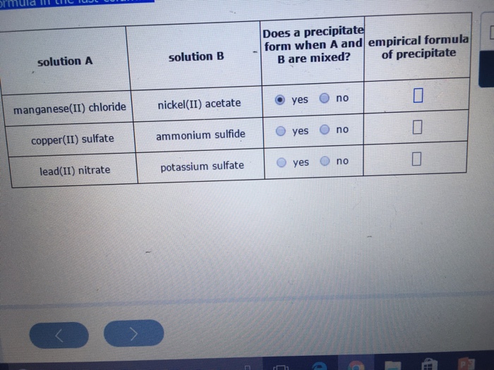 Solved Does a precipitate form when A and empirical formula