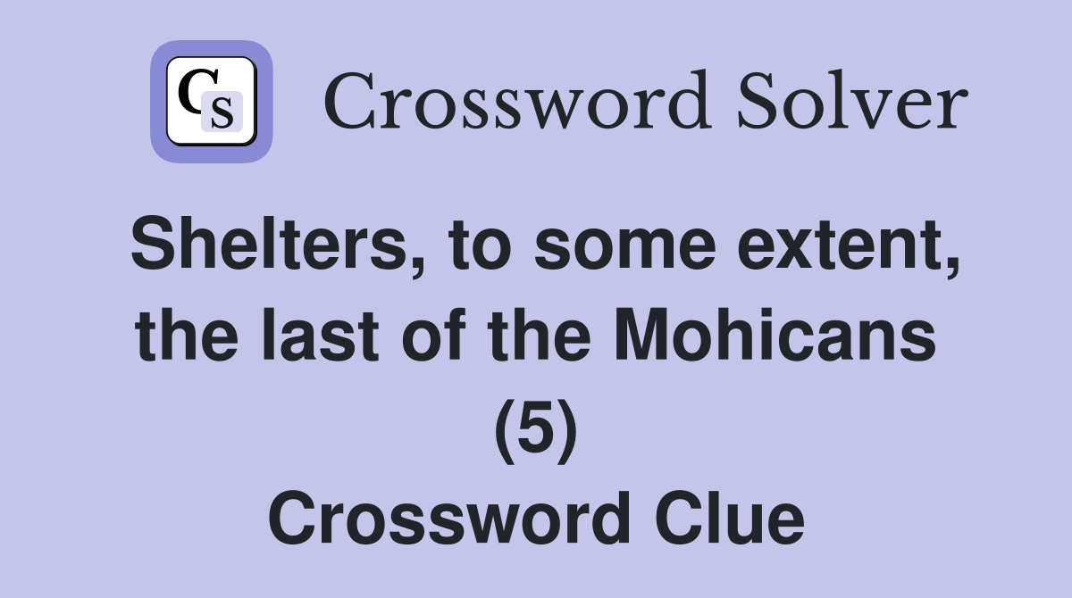 Shelters, to some extent, the last of the Mohicans (5) Crossword Clue