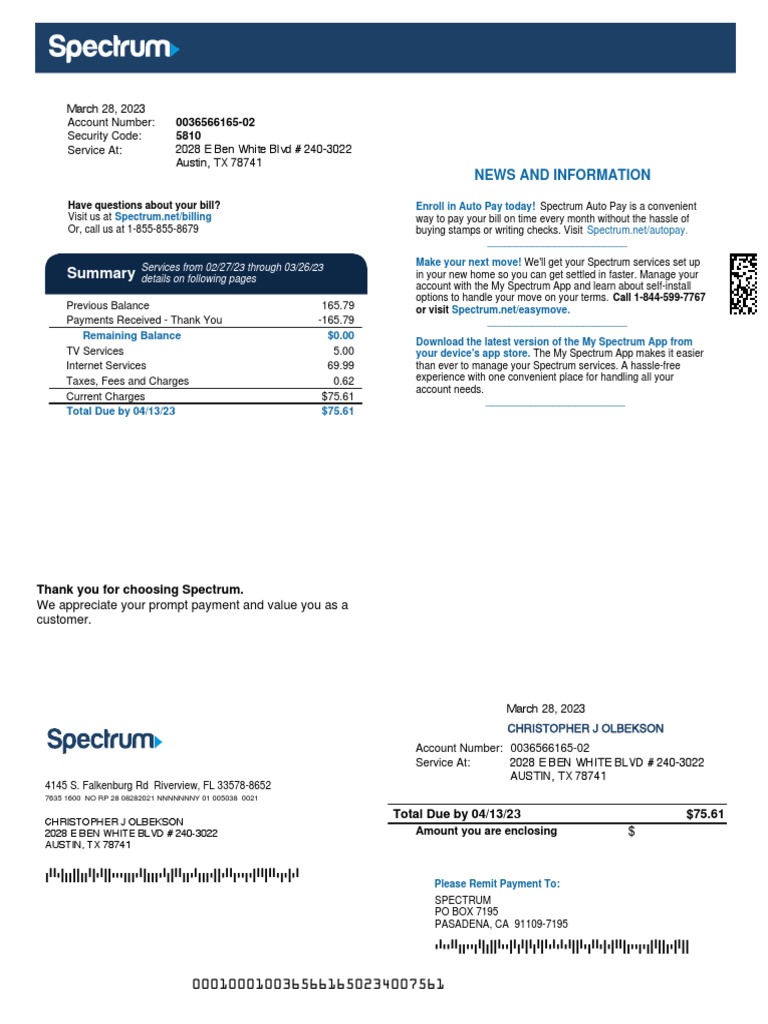 Download your statement (pdf version of your bill). Charter spectrum (better known as simply spectrum) is a trade name of charter communications, used to market consumer and. Set up auto pay (recurring payments). Usa spectrum bill editable template at the best price. We create a very high quality.