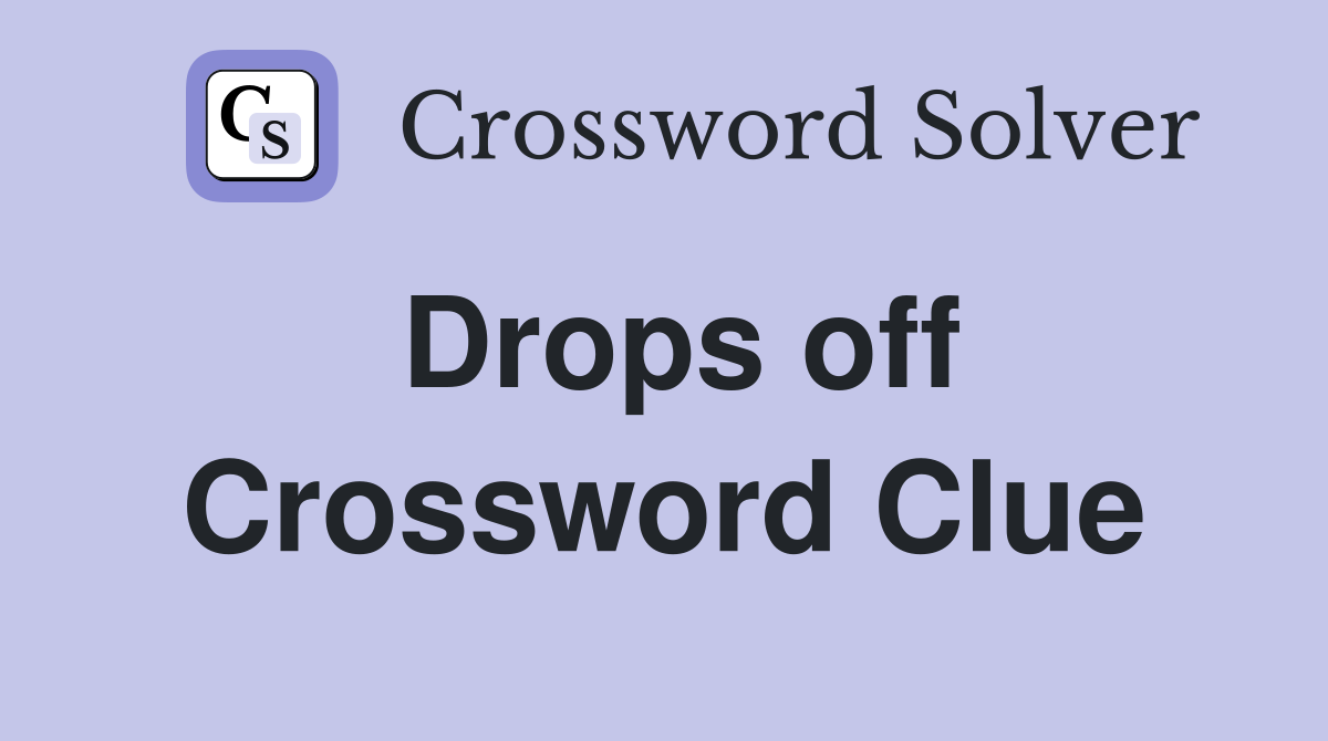 Here is the answer for the crossword clue drops drops. We have found 40 possible answers for this clue in our database. We know 17 solutions for: Here is the answer for the crossword clue drops last seen in new york times puzzle.