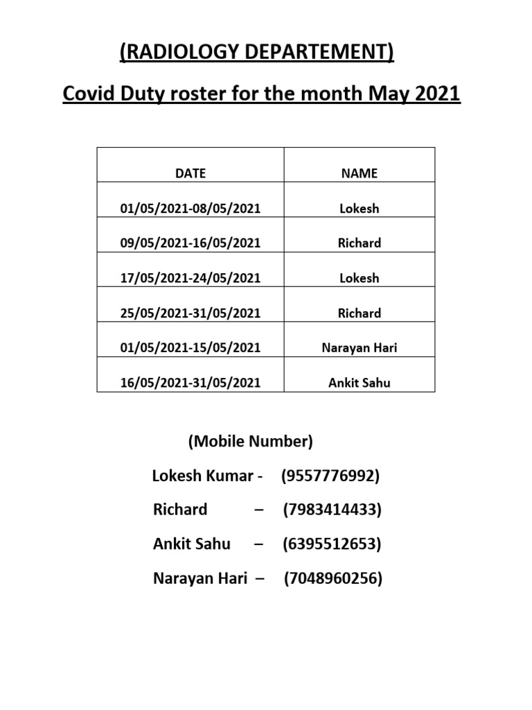 Duty Roster For The Month April 2021 PDF