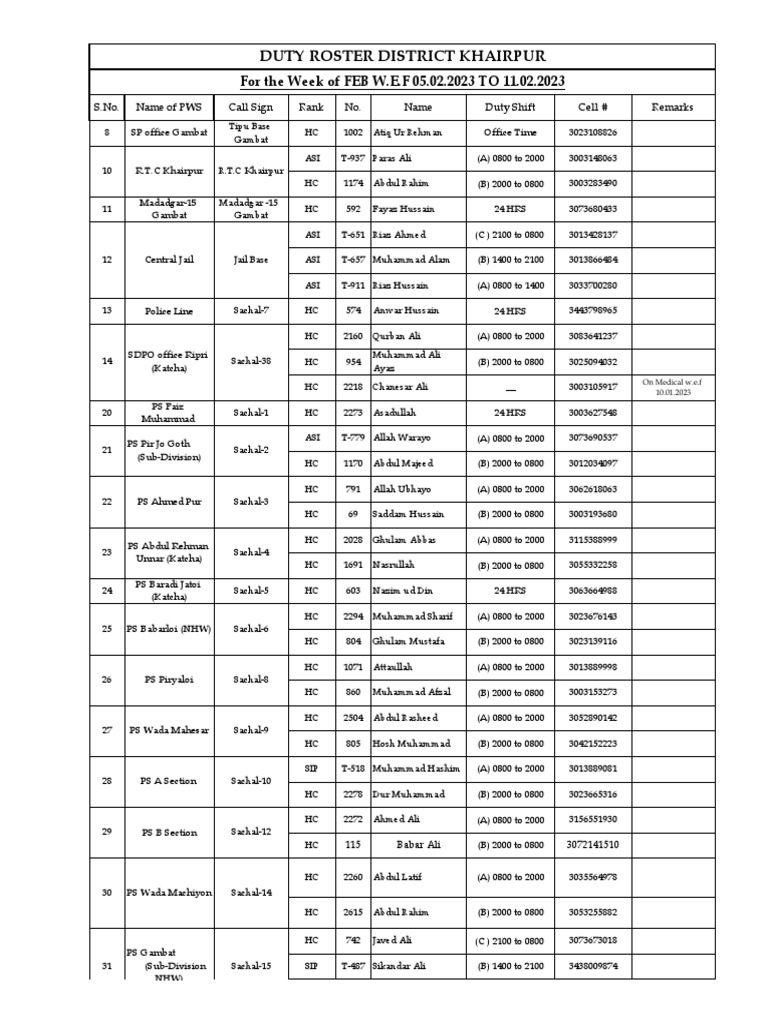 Duty Roster For Group1 PDF Pakistan