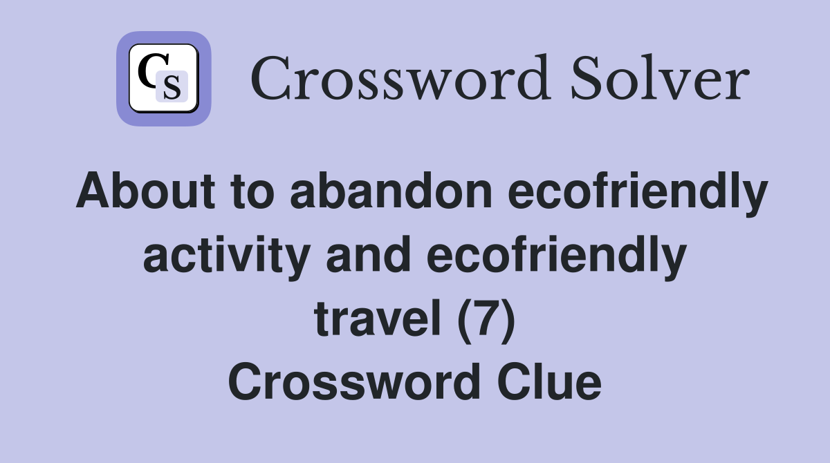 Solve your ecofriendly crossword puzzle fast & easy with. Today's crossword puzzle clue is a quick one: We have found 40 possible answers for this.