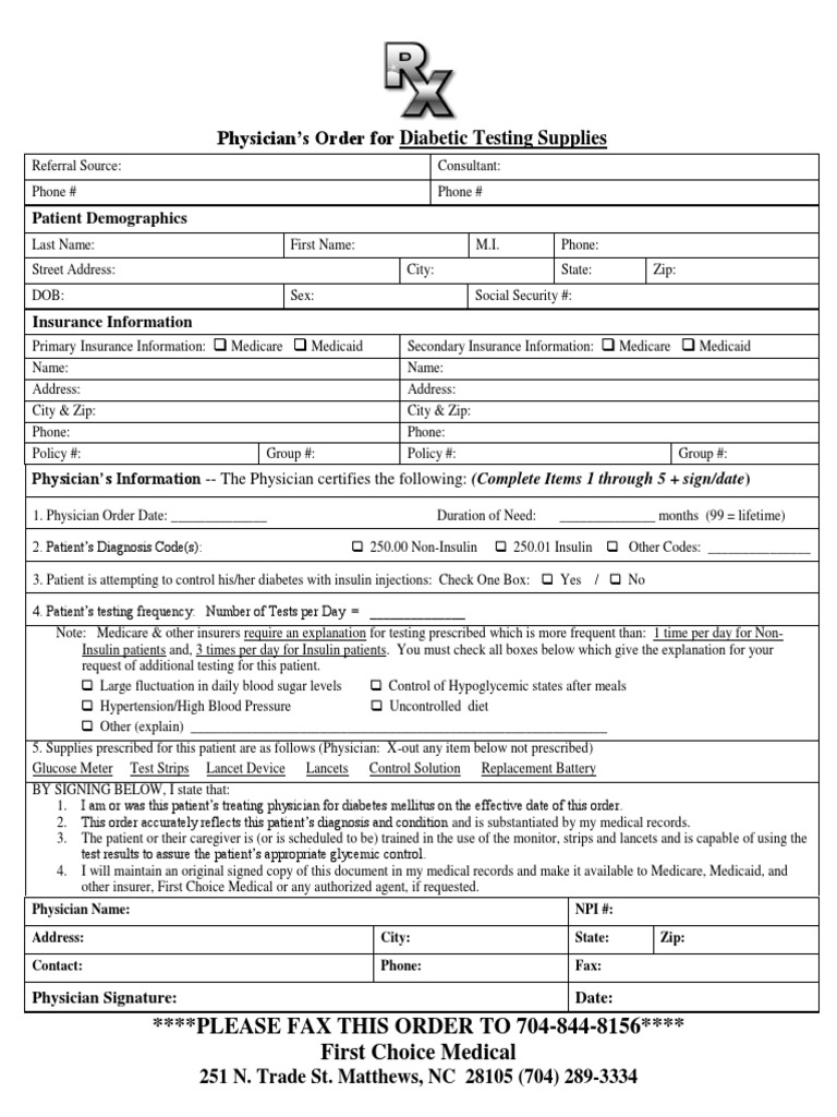 Diabetic Supplies Order PDF Endocrine Pancreas Medicine