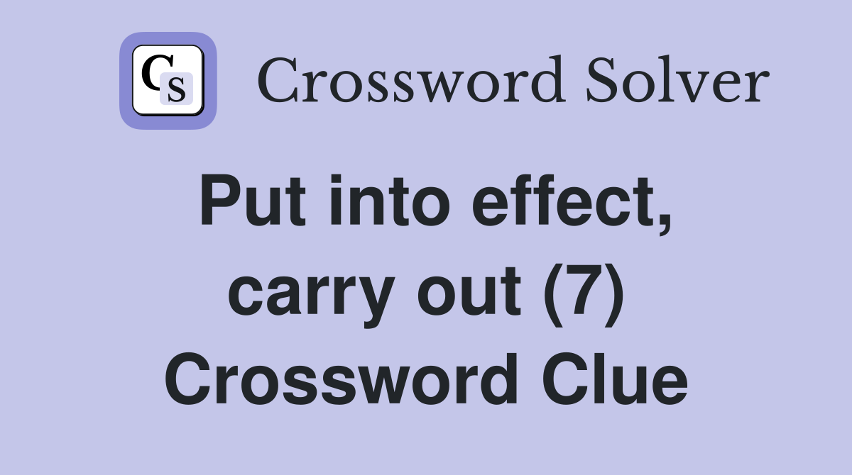 Put into effect, carry out (7) Crossword Clue Answers Crossword Solver
