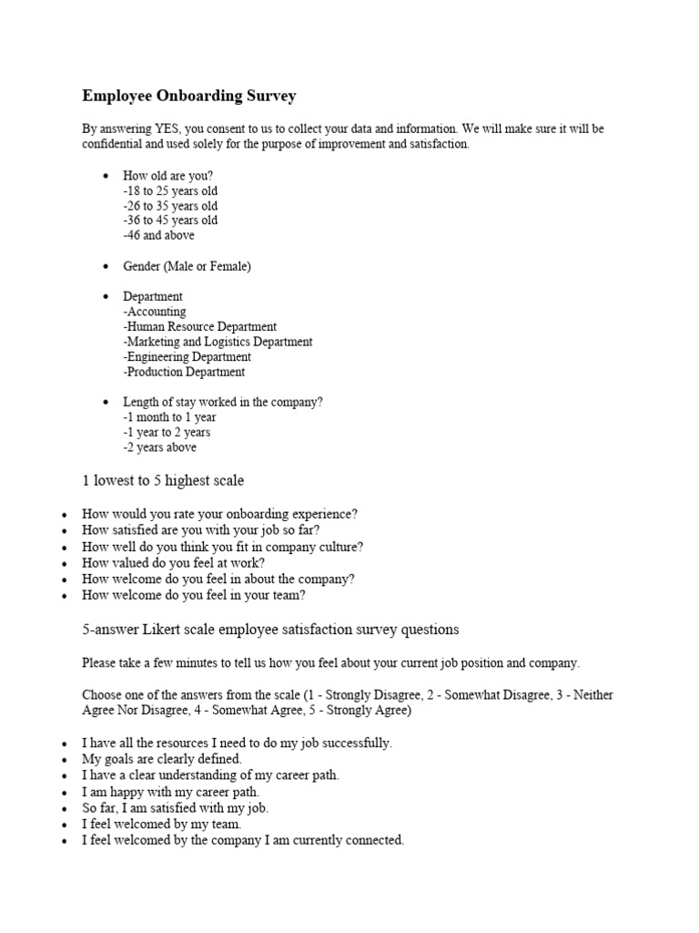 Employee Onboarding Survey 45 Questions To Ask New Hires