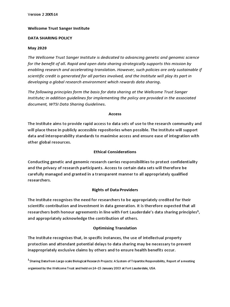 Data Sharing Policy and Guidelines Jan 2021 PDF Genome Wide