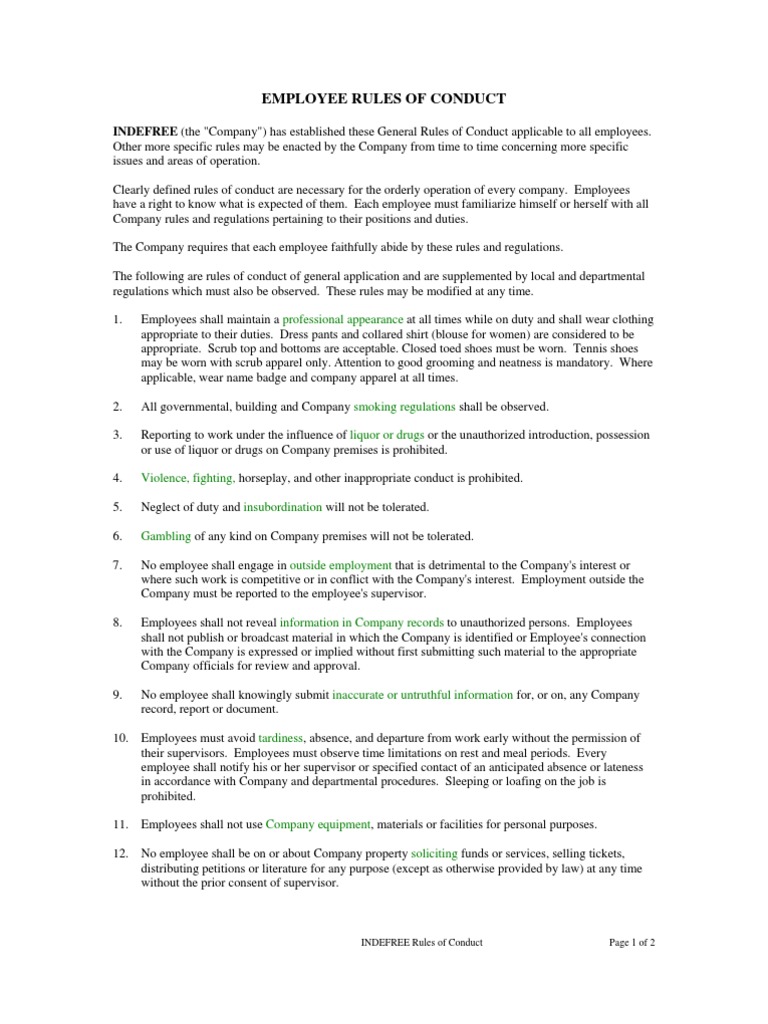 Employee Rules of Conduct Employment Property Free 30day Trial