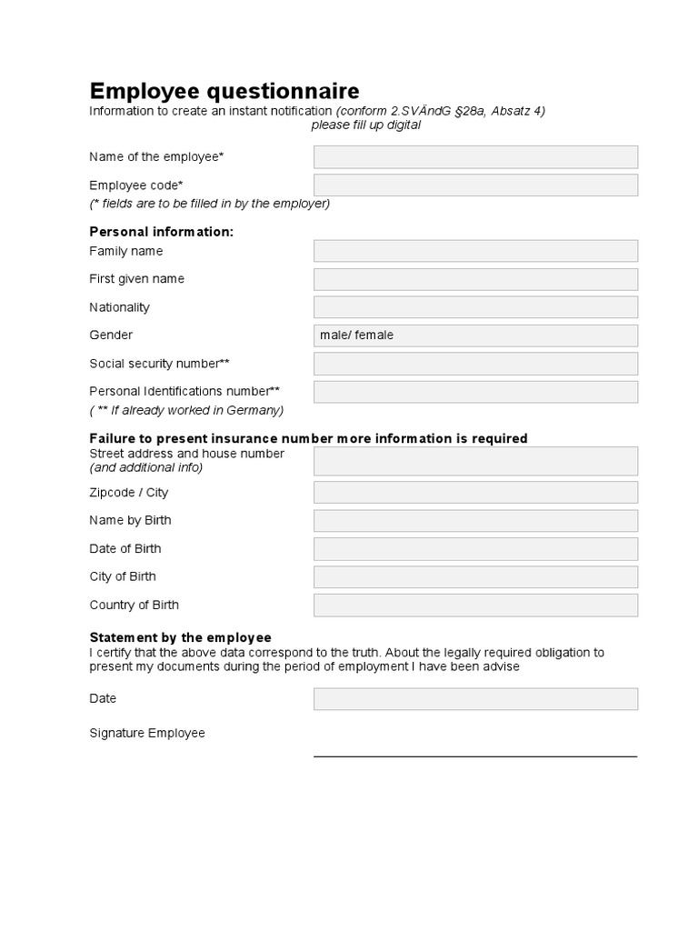 1c Employee Questionnaire PDF