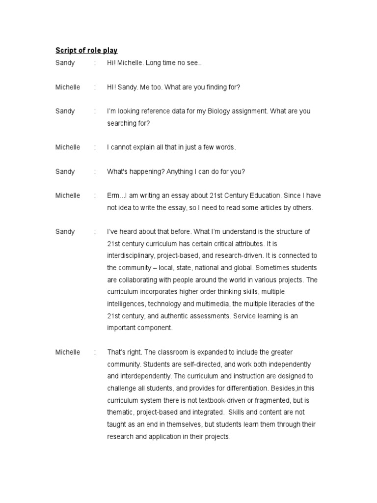 Script of Role Play PDF Project Based Learning Critical Thinking