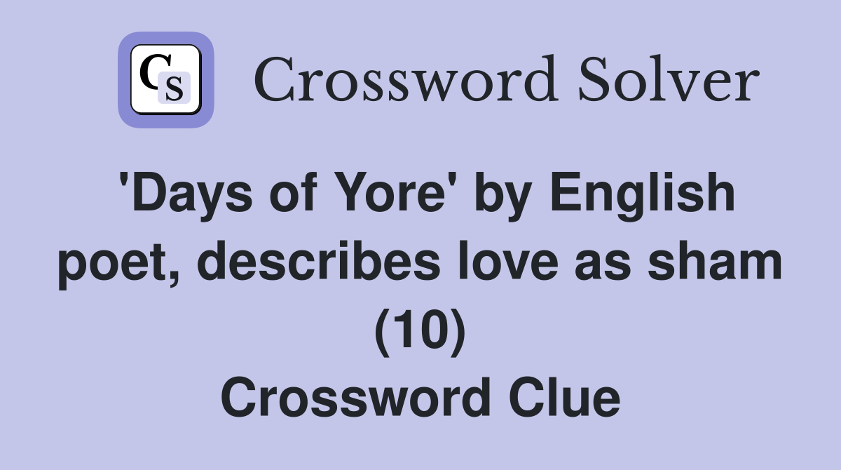 'Days of Yore' by English poet, describes love as sham (10) Crossword
