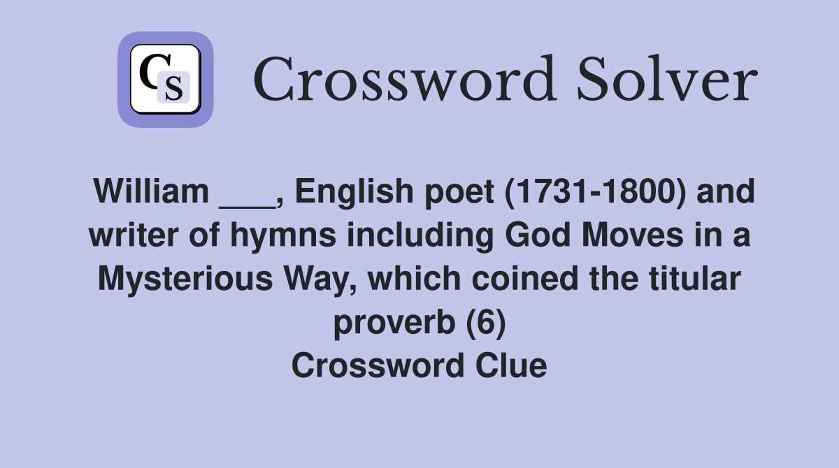 Here are the possible solutions for english poet clue. Today's crossword puzzle clue is a quick one: Enter the length or pattern for better results. It was last seen in british quick crossword. Here is the answer for the crossword clue english poet last seen in mirror quick puzzle.