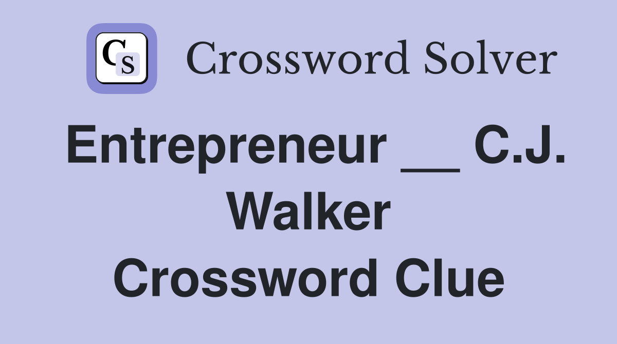 Entrepreneur __ C.J. Walker Crossword Clue Answers Crossword Solver