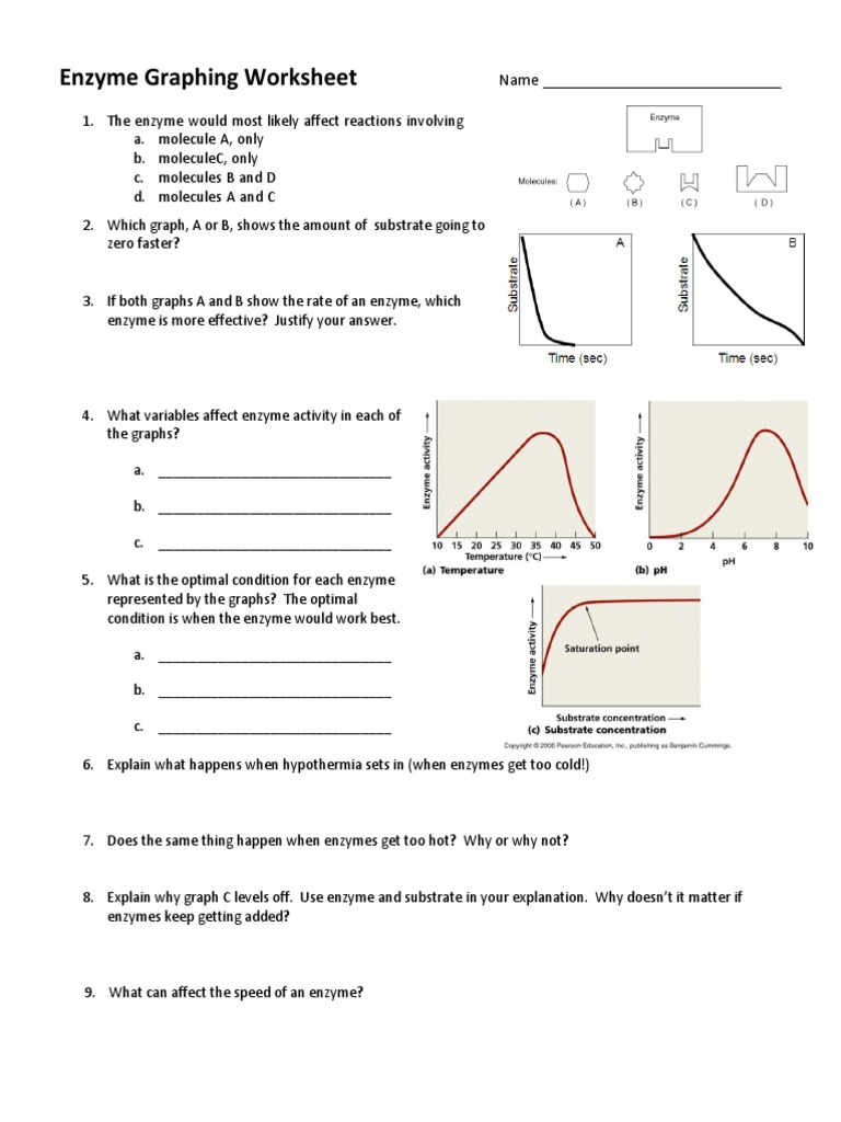 Enzyme Graphing Worksheet - Predict the reactivity of trypsin at ph 14. Molecules a and c 2. Study with quizlet and memorize flashcards containing terms like explain what happens when hypothermia sets in (when enzymes get too. Molecules b and d d. The enzyme would most likely affect reactions involving a. Think the following enzymes break down?