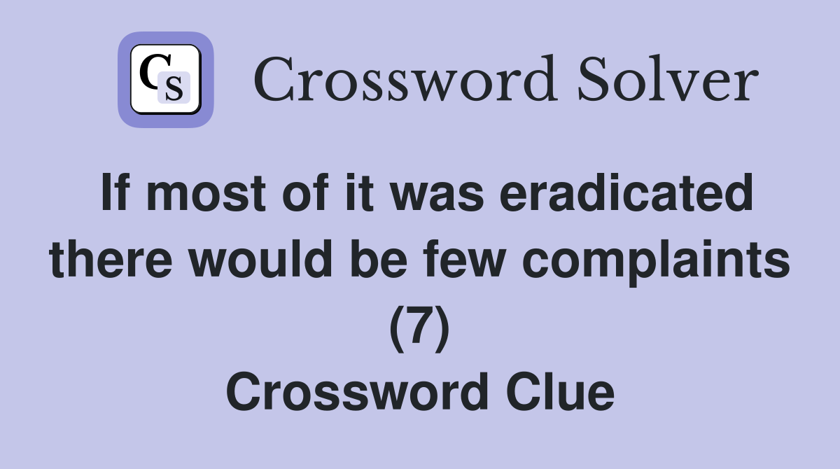The crossword solver found 56 answers to eradicated, 10 letters crossword clue. Here is the answer for the crossword clue eradicated last seen in premier sunday puzzle. We have found 40 possible answers for this. Ny times, daily celebrity, telegraph, la times and. The crossword solver finds answers to classic.