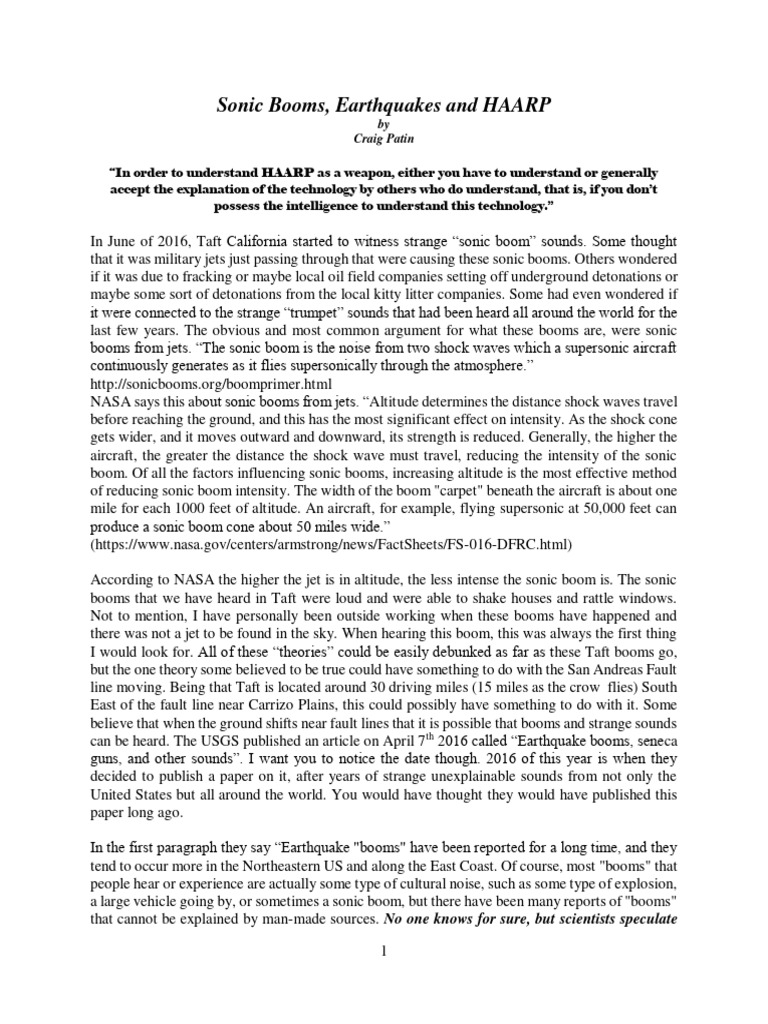 Sonic Booms Earthquakes and HAARP PDF Radio Plate Tectonics