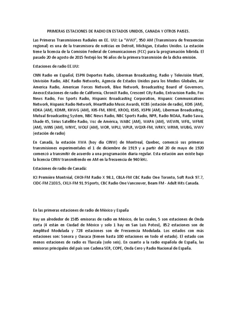 Primeras Estaciones de Radio en Estados Unidos PDF Radiodifusión
