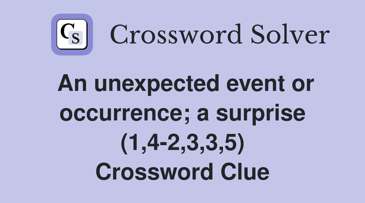 An unexpected event or occurrence; a surprise (1,42,3,3,5) Crossword
