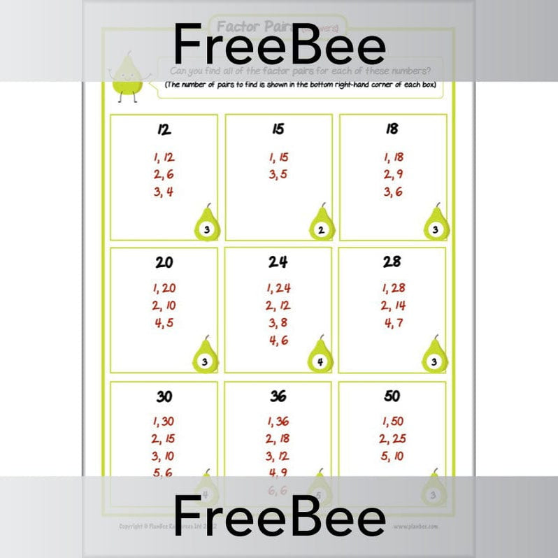 FREE Factor Pairs Worksheet PlanBee Worksheets Library
