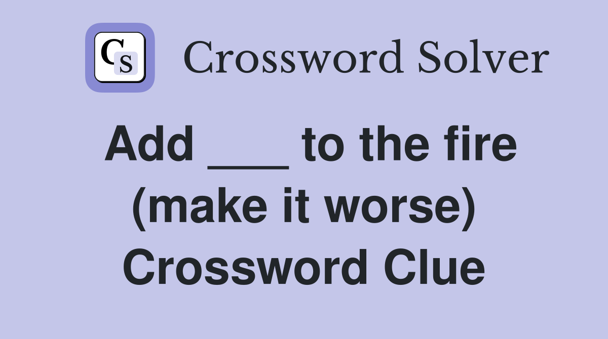 Add ___ to the fire (make it worse) Crossword Clue Answers