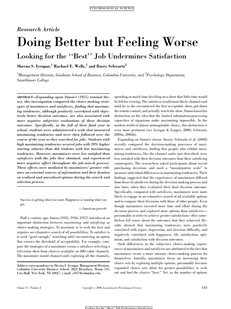 Doing Better Feeling Worse PDF Choice Affect (Psychology)
