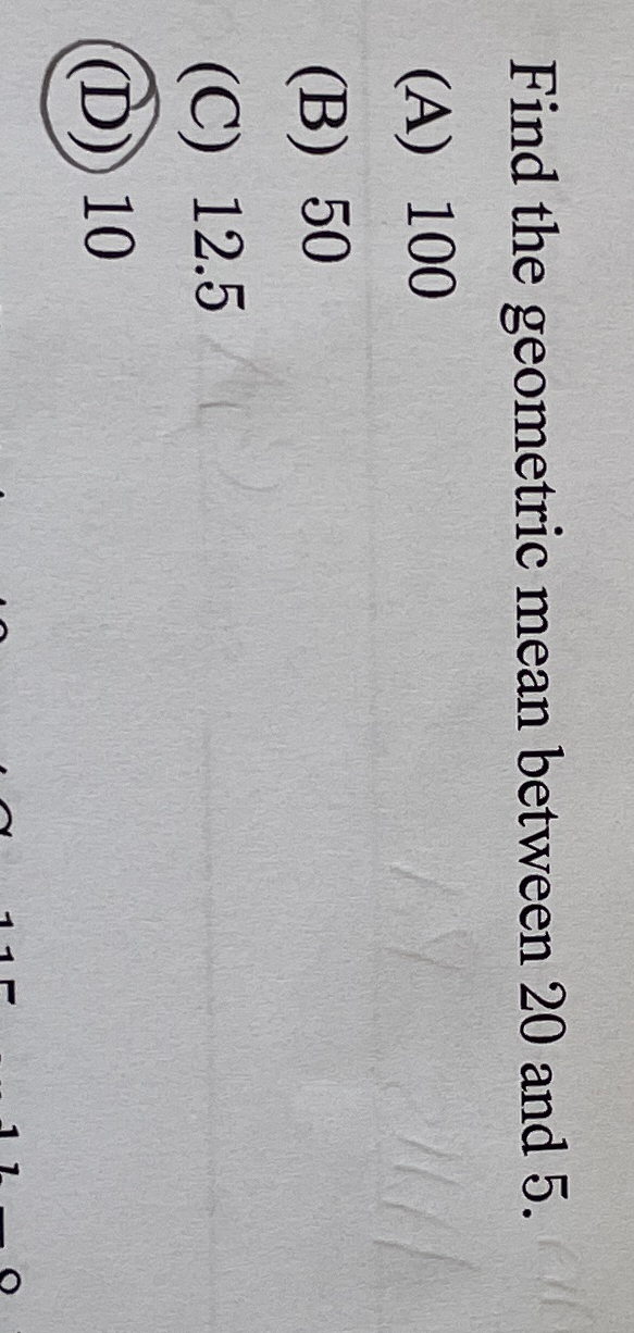 Solved Find the geometric mean between 20 and